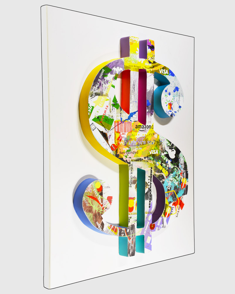 The Modern Visage series utilizes an area of the mixed media painting that is a 2.5 inch deep cutout or projection to create a stunning 3D wall sculpture