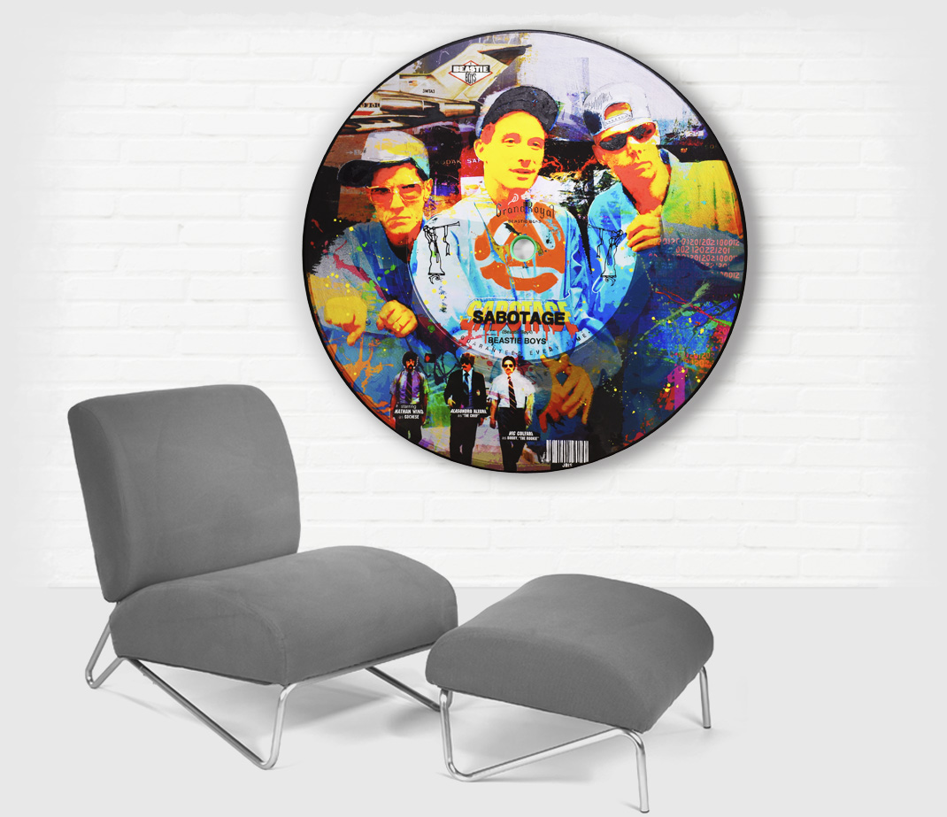 VINYLGRAPH is a 3D popart record that is 1 inch thick and floats off the wall 1.5 inches with a hole in the center open to the wall behind