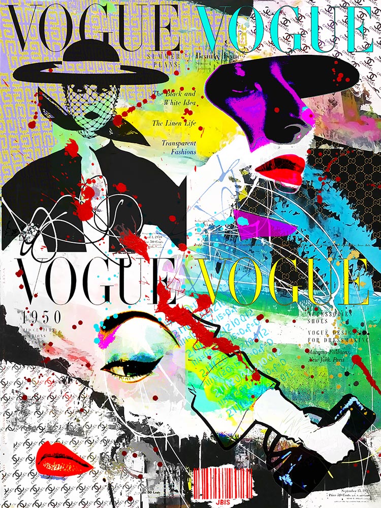 “4VOGUE” 36 by 48 inches, acrylic - mixed media & GD on canvas mounted to hardpanel coated in resin (2019)