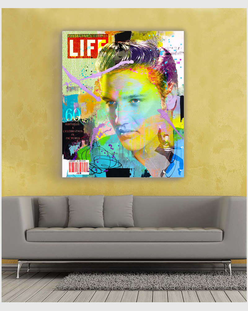 “60ELVIS” 40 by 48 inches, acrylic - mixed media & GD on canvas mounted to hardpanel coated in resin (2019)