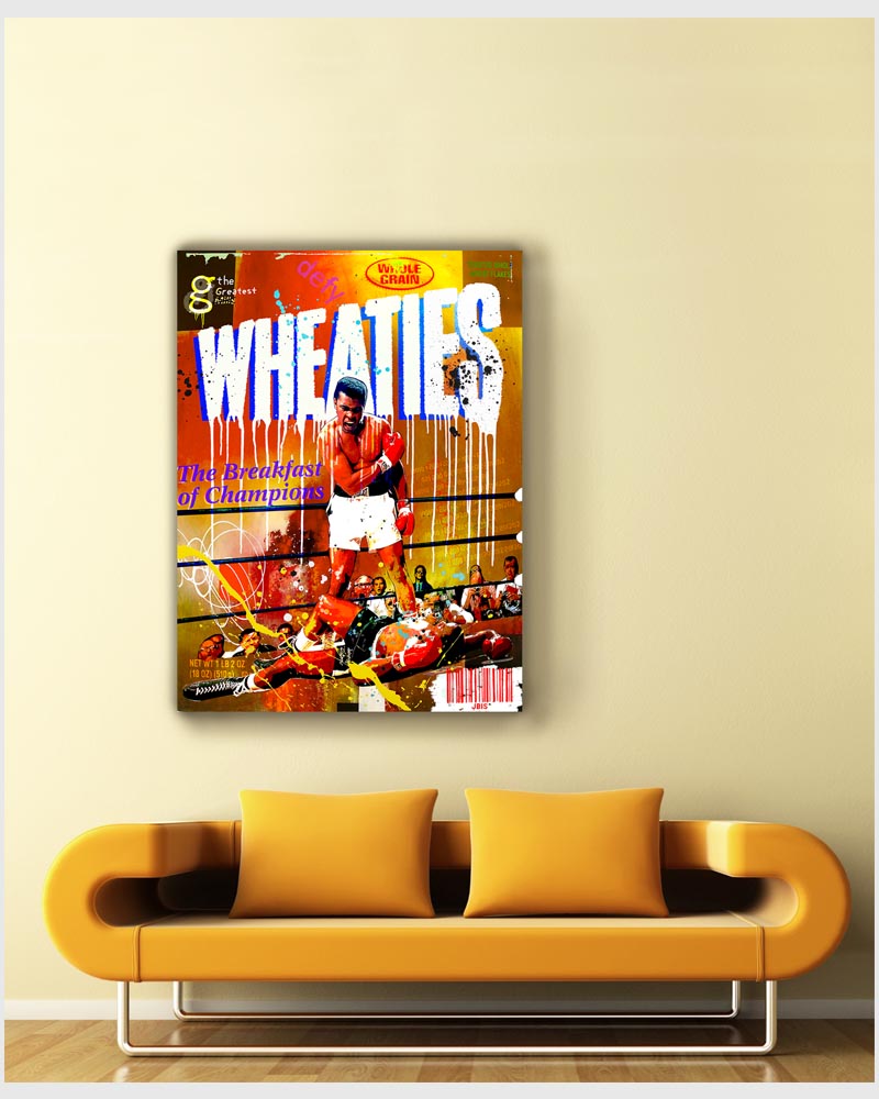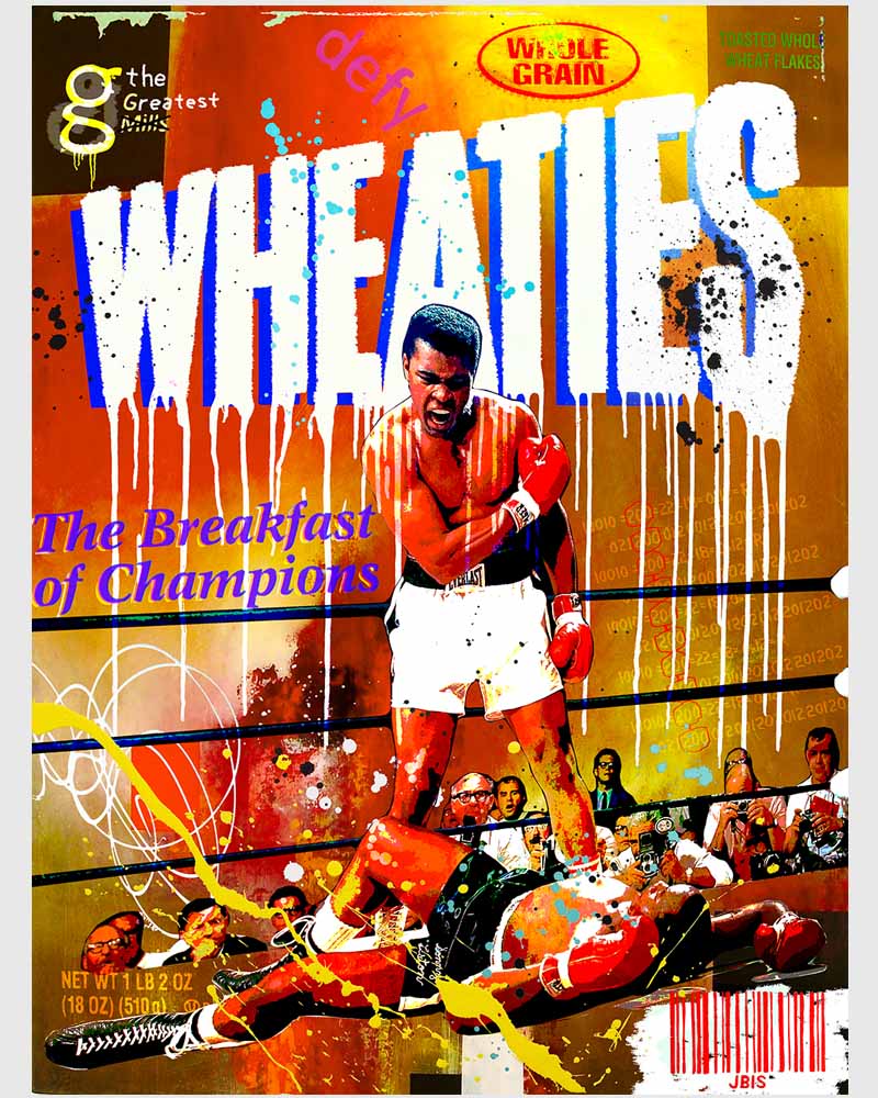 “Wheaties” 36 by 48 inches, acrylic - mixed media & GD on canvas mounted to hardpanel coated in resin (2019)