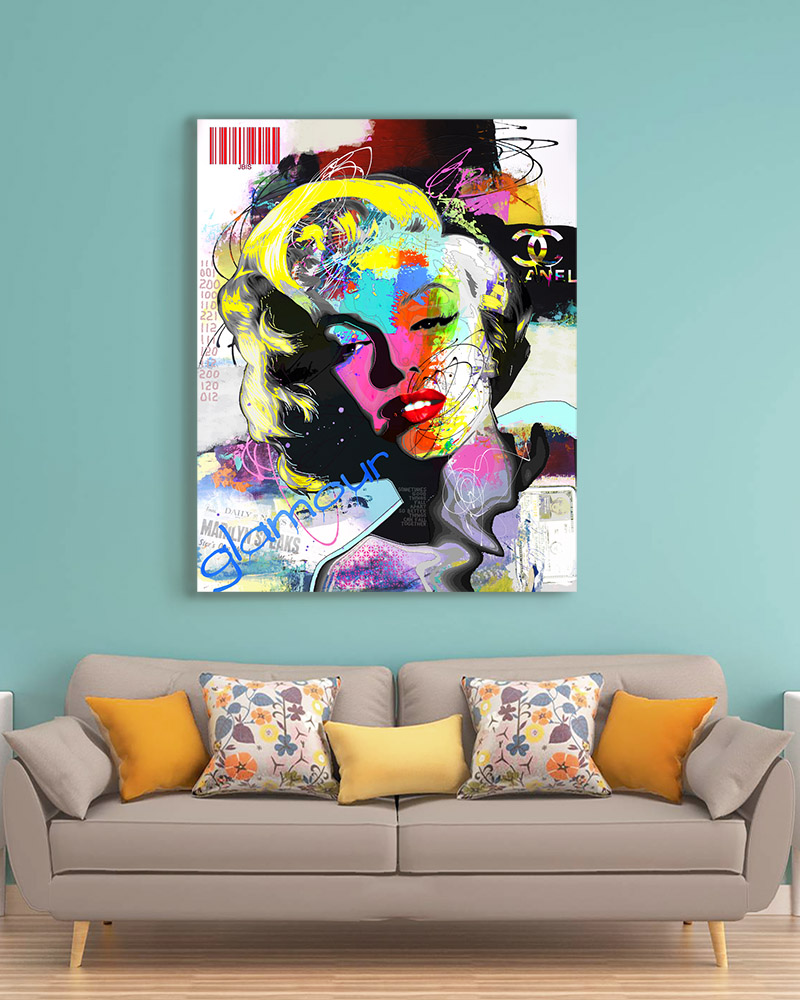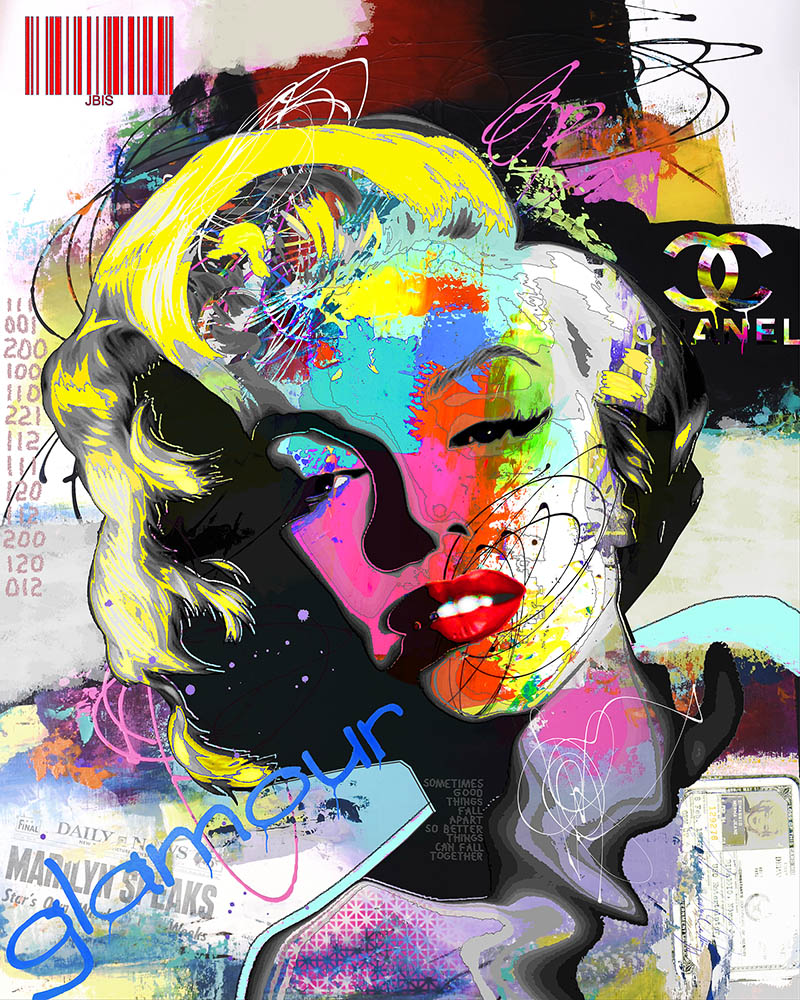 “GLAMOUR” 45 by 56 inches, acrylic - mixed media & GD on canvas mounted to hardpanel coated in resin (2019)