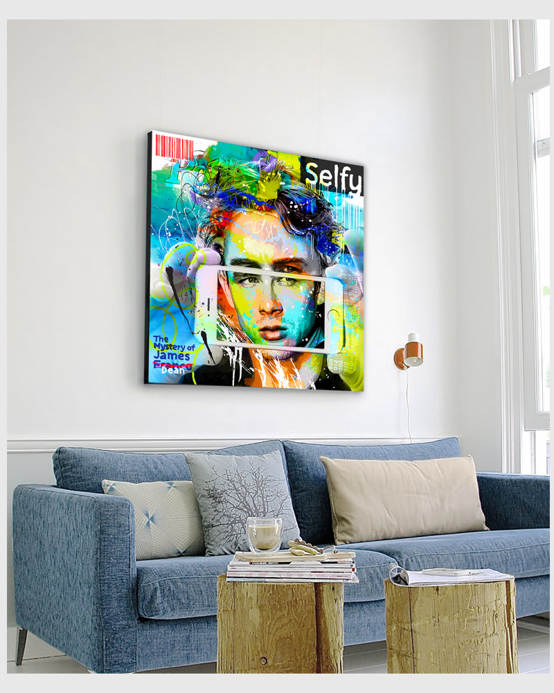 “SELFY JAMES” 45 by 45 inches, acrylic - mixed media & GD on canvas mounted to hardpanel coated in resin (2019)
