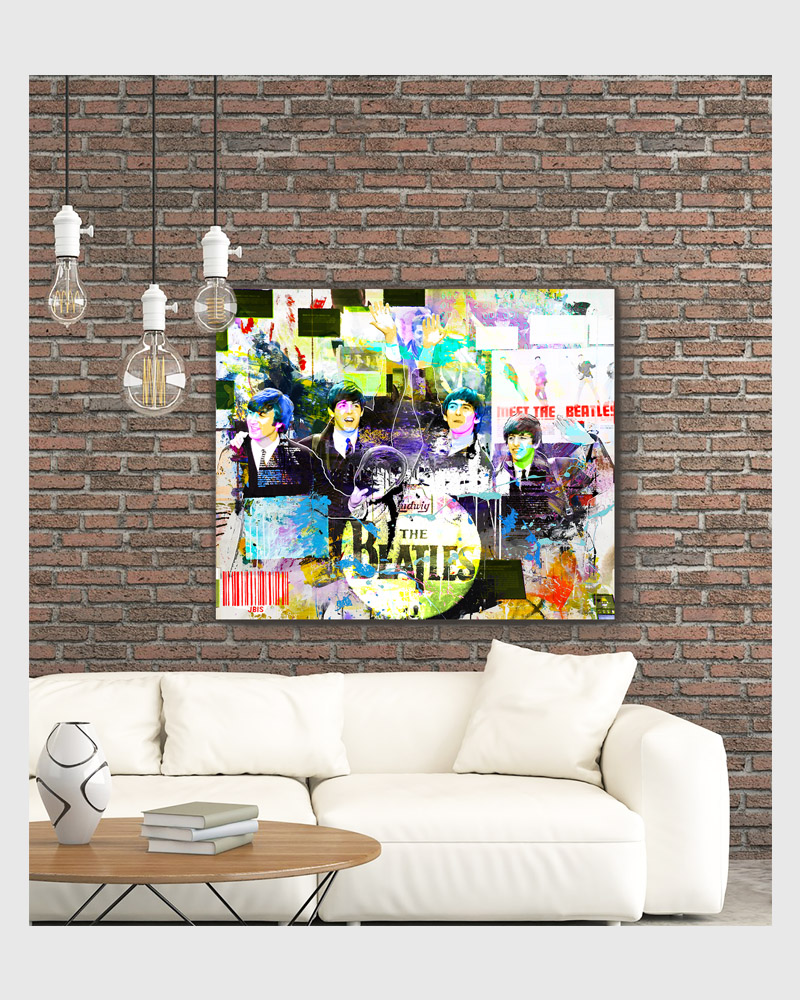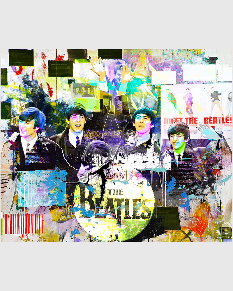 “MEET THE BEATLES” 48 by 24 inches, acrylic - mixed media & GD on canvas mounted to hardpanel coated in resin (2020)