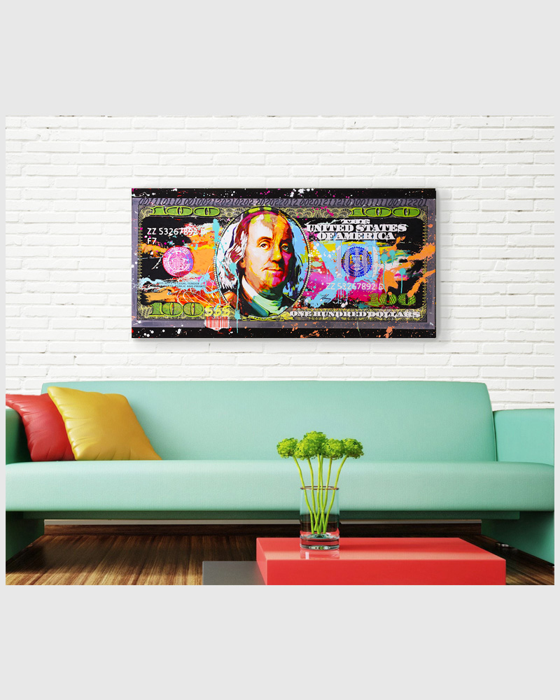 “C-NOTE” 48 by 24 inches, acrylic - mixed media & GD on canvas mounted to hardpanel coated in resin (2020)