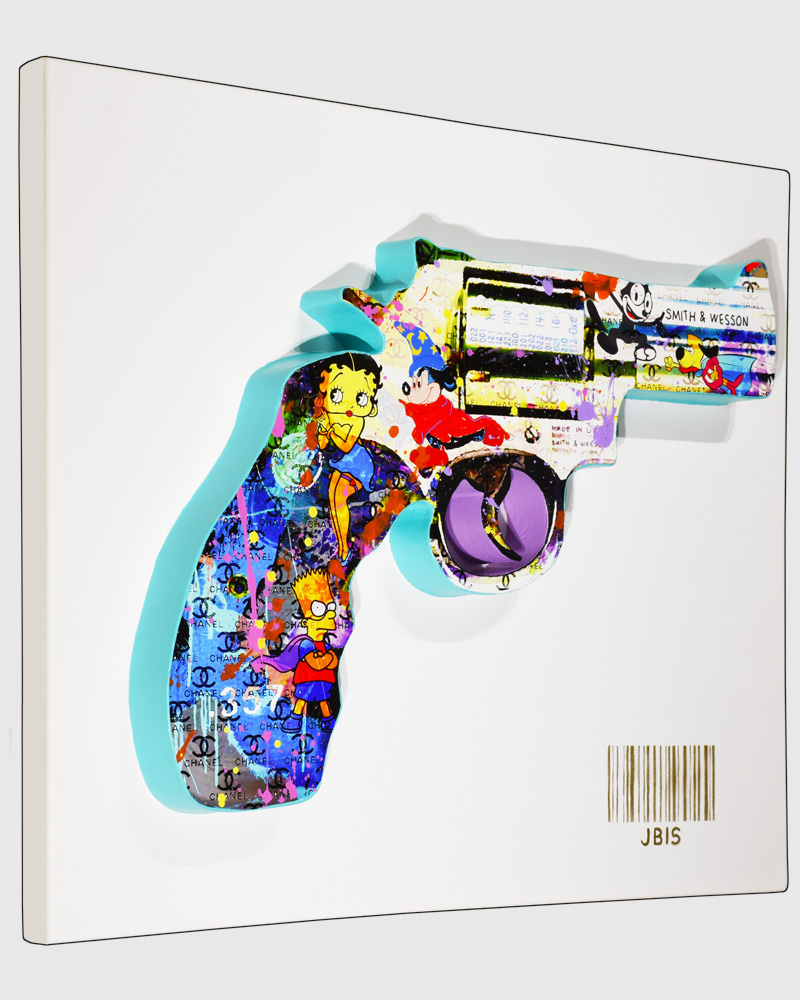 The Modern Visage series utilizes an area of the mixed media painting that is a 2.5 inch deep cutout or projection to create a stunning 3D wall sculpture